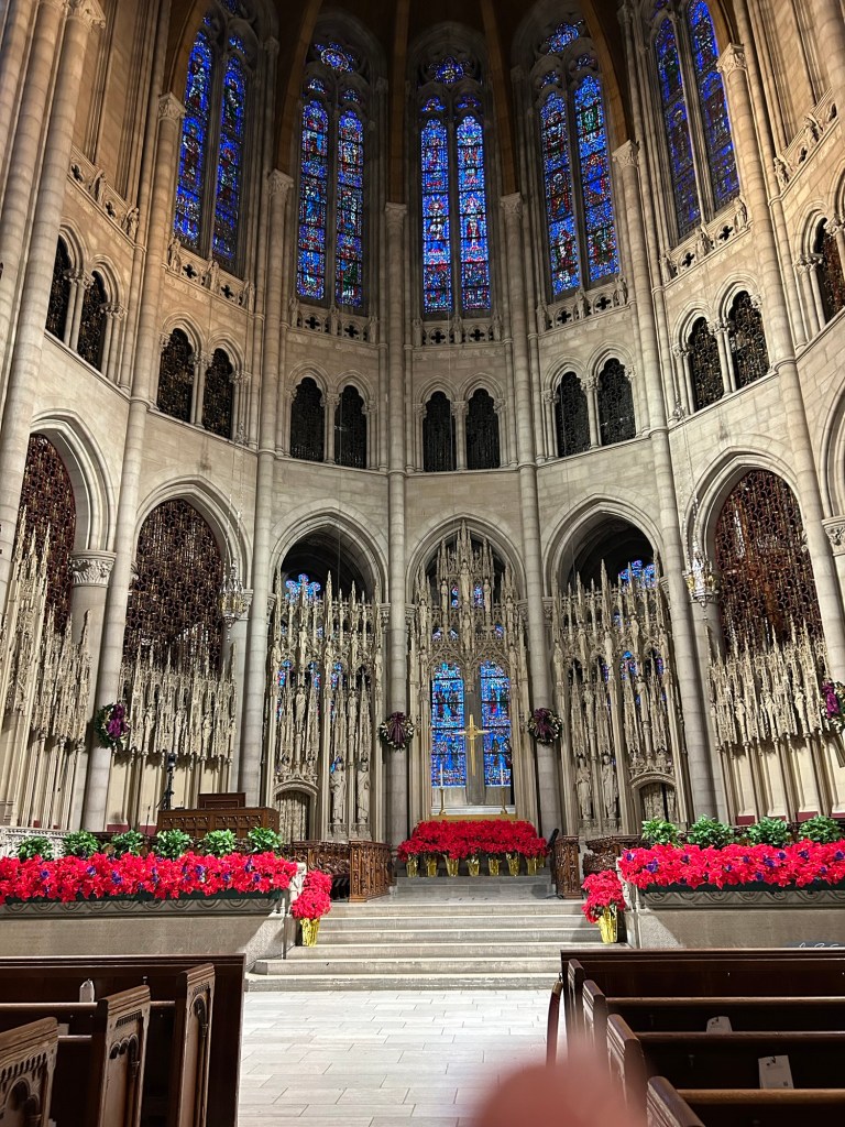 Day 1: We started the day with mass at St. Patrick’s Cathedral. We took a walking tour of Lower Manhattan and learned to ride the subway. We visited the financial district, China Town, Little Italy, the 911 Memorial and The Occulus. We walked through Battery Park and saw the Statue of Liberty. We walked and walked and walked. Grand Central Station was amazing as was the many shops and Christmas displays throughout the city. We visited Trump tower and rode the famous escalator.